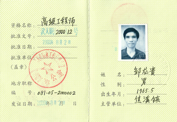 高級(jí)工程師證書